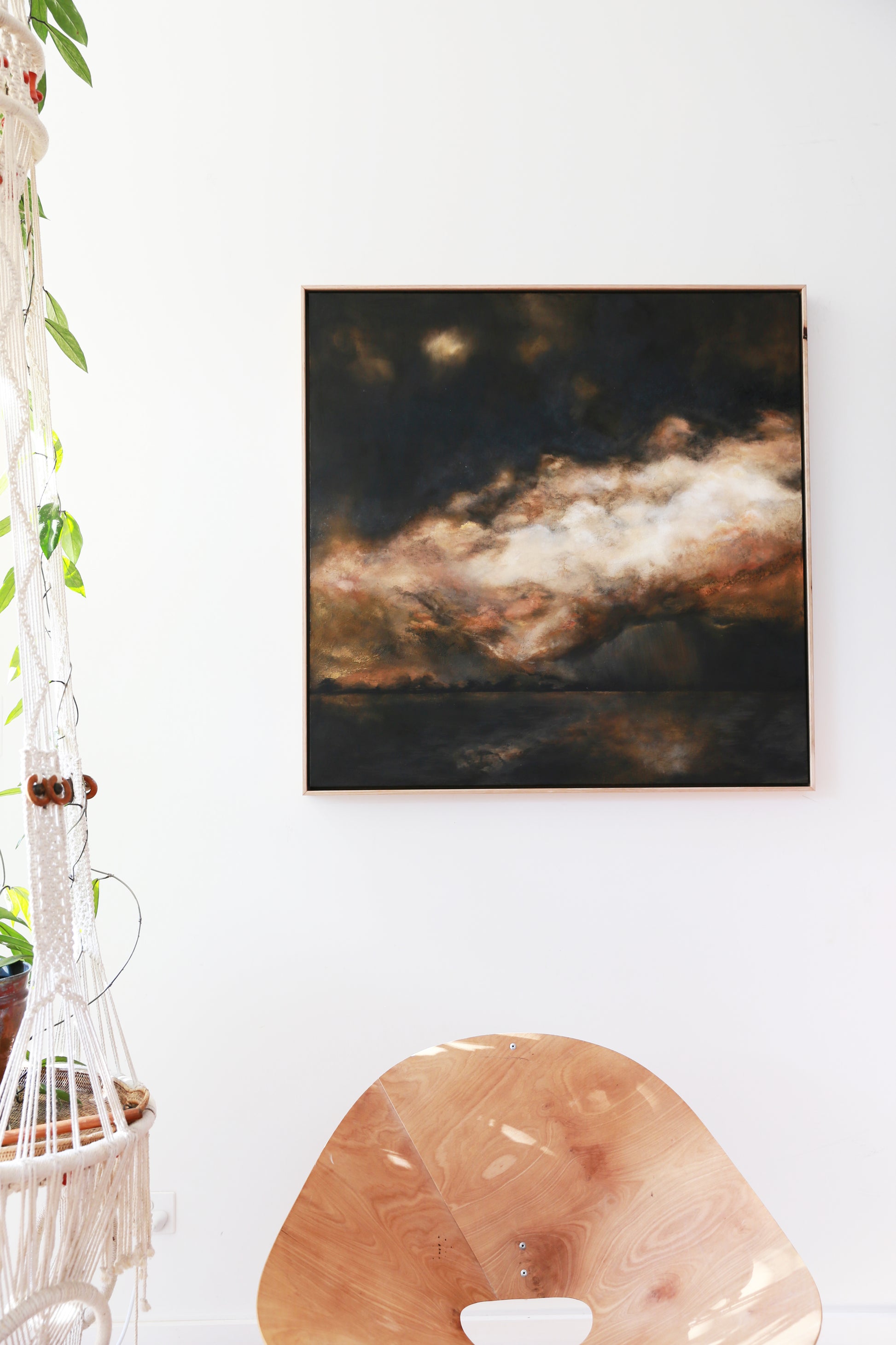 The juxtaposition of luminous clouds, dark stormy hues, moody tones, and warm accents creates a compelling visual narrative that invites you to immerse yourself in the scene and interpret its emotional impact.